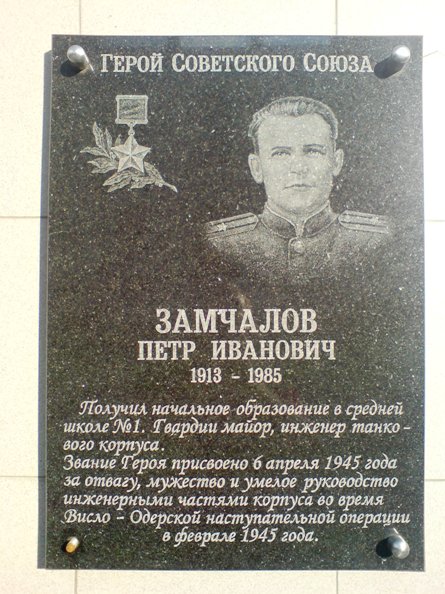 Замчалов Пётр Иванович - корпусной инженер 9-го гвардейского танкового Уманского Краснознаменного ордена Суворова корпуса 2-й гвардейской танковой армии 1-го Белорусского фронта, гвардии майор.