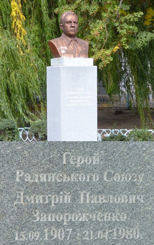 В центре поселка городского типа Юрьевка установлен бюст Героя.