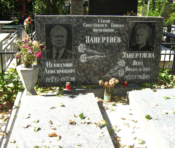 Указом Президиума Верховного Совета СССР от 1 ноября 1943 года за мужество, отвагу и героизм, проявленные в борьбе с немецко-фашистскими захватчиками, старшему лейтенанту Завертяеву Вениамину Анисимовичу присвоено звание Героя Советского Союза с вручением ордена Ленина и медали «Золотая Звезда» (№ 3313).