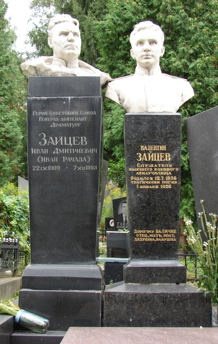 Иван Дмитриевич Зайцев известен и как драматург. Писал под псевдонимом Иван Рачада. Начал печататься в 1934 году. Автор более 10 пьес, в которых отобразил события Великой Отечественной войны: "Есть такая партия", "Когда мертвые оживают", "Люди в шинелях", "Над голубым Дунаем", "Дорога названа", "Чего боятся ястребы", "Нина Бездольная (Дева Мария)", "Суд Фемиды", "Маршал Жуков" и другие. Член Союза писателей СССР.