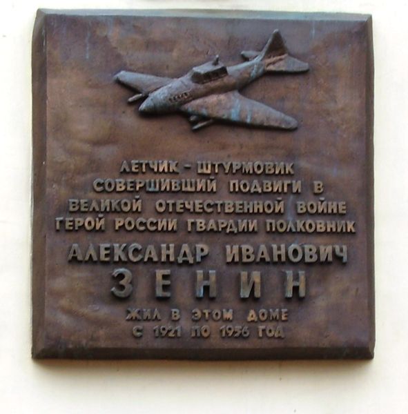 Зенин Александр Иванович - в годы Великой Отечественной войны командир звена 131-го гвардейского Будапештского ордена Суворова штурмового авиационного полка 7-й гвардейской Дебреценской Краснознаменной штурмовой авиационной дивизии 3-го гвардейского Смоленско-Будапештского Краснознаменного штурмового авиационного корпуса 5-й воздушной армии 2-го Украинского фронта, полковник авиации в отставке.