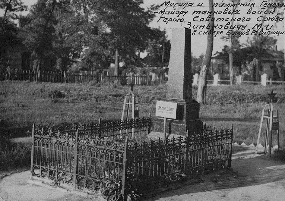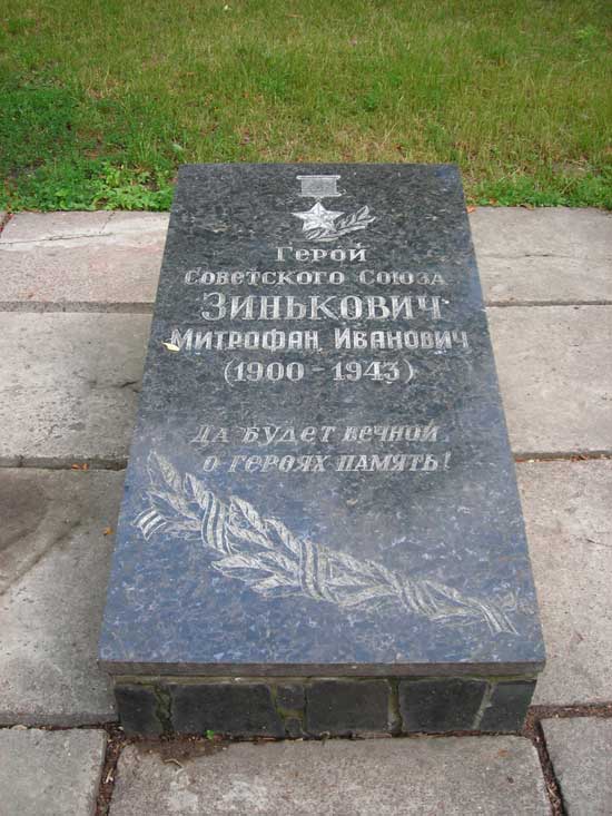 Командир 6-го гвардейского танкового корпуса (3-я гвардейская танковая армия, Воронежский фронт) гвардии генерал-майор танковых войск Зинькович М.И. в период 22-24 сентября 1943 года умело и решительно руководил форсированием реки Днепр у села Григоровка Каневского района Черкасской области Украины и захватом плацдарма, обеспечив тем самым переправу всех частей 6-го гвардейского танкового корпуса.