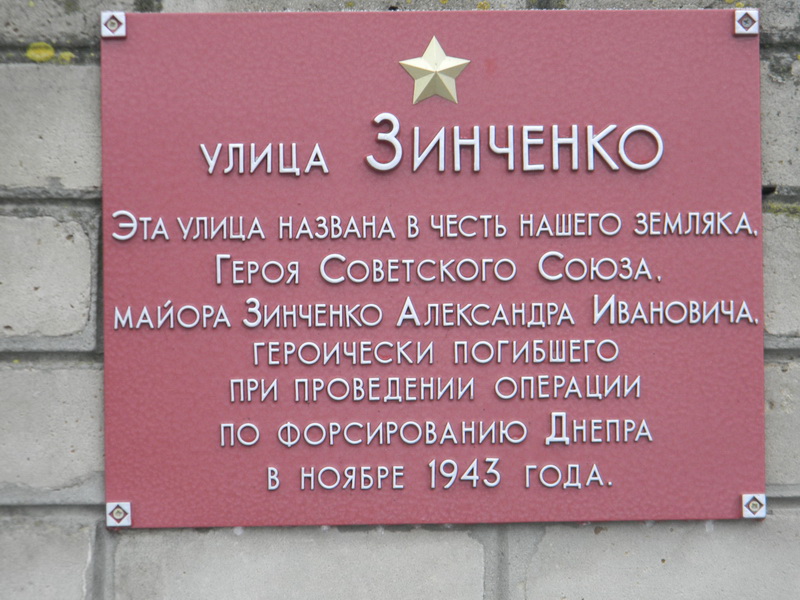 Указом Президиума Верховного Совета СССР от 17 октября 1943 года за успешное форсирование реки Днепр севернее Киева, прочное закрепление плацдарма на западном берегу реки Днепр и проявленные при этом отвагу и геройство майору Зинченко Александру Ивановичу присвоено звание Героя Советского Союза с вручением ордена Ленина и медали «Золотая Звезда».