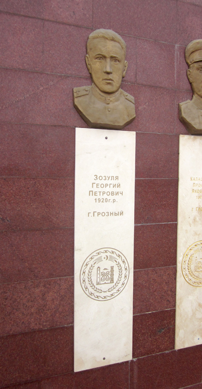 В Грозном на Аллее Героев установлен памятный знак Г.П.Зозуле, ранее в городе его именем была названа улица.