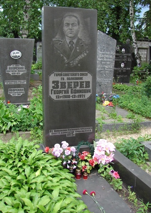 Указом Президиума Верховного Совета СССР от 28 апреля 1945 года за образцовое выполнение боевых заданий командования на фронте борьбы с немецко-фашистскими захватчиками и проявленные при этом мужество и героизм, гвардии полковнику Звереву Георгию Ефимовичу присвоено звание Героя Советского Союза с вручением ордена Ленина и медали «Золотая Звезда» (№ 4962).