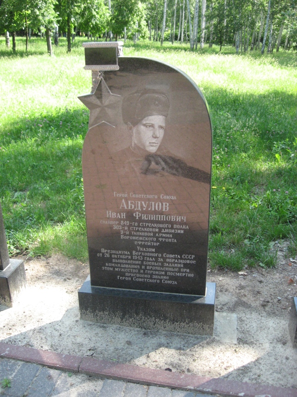 Абдулов Иван Филиппович - снайпер 849-го стрелкового полка 303-й стрелковой дивизии 3-й танковой армии Воронежского фронта, ефрейтор.