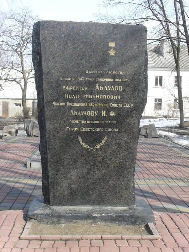 В городе Люботин Герою установлен памятный знак. Его имя указано на памятном знаке воинам 303-й стрелковой дивизии – освободителям поселка Старый Салтов. В селе Шумиха на здании школы, в которой учился И.Ф.Абдулов, установлена мемориальная доска; его именем названа улица.
