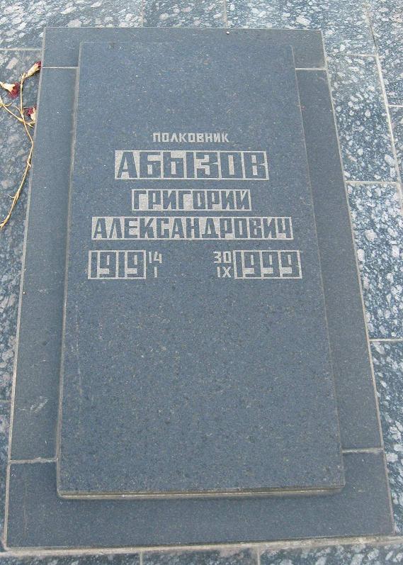 С 12-го по 23 октября 1943 года командир орудия 321-го артиллерийского полка (91-я стрелковая дивизия, 51-я армия, Южный, с 20 октября 1943 года - 4-й Украинский фронт) старший сержант Григорий Абызов, находясь в боевых порядках стрелковых подразделений, из орудия прямой наводкой уничтожил большое количество огневых точек противника, пять тяжёлых и два средних танка, штурмовое орудие и большое число гитлеровцев.