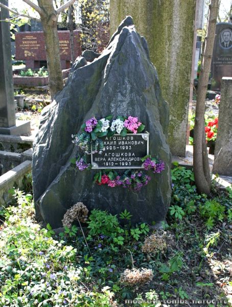 На Кунцевском кладбище в Москве. Дата снимка 6.05.2007 года. Фото с сайта http://moscow-tombs.narod.ru/1993/agoshkov_mi.JPG