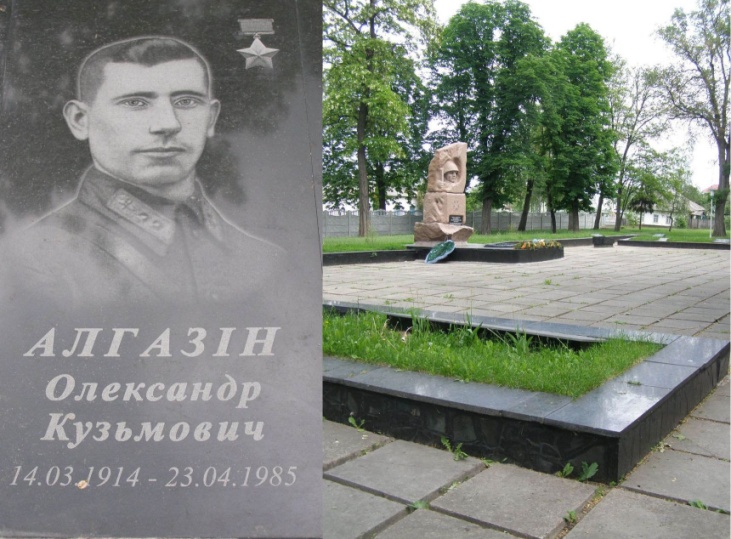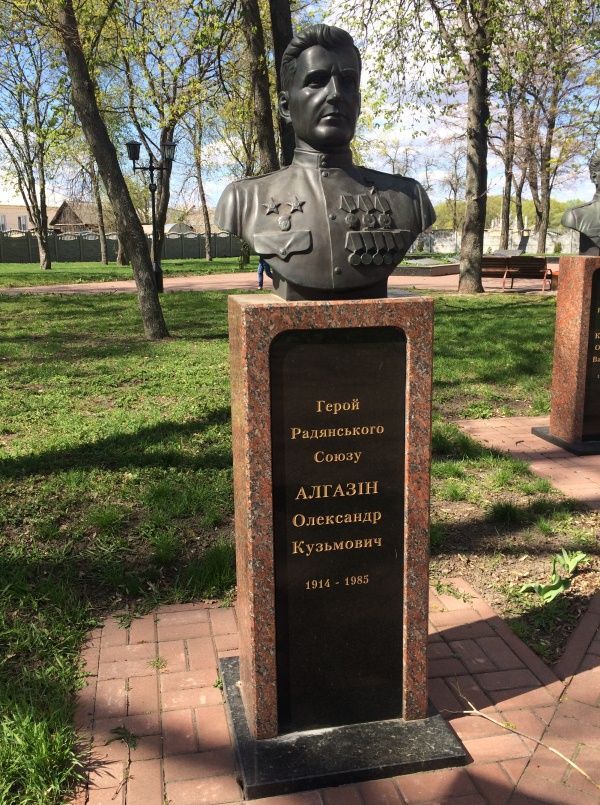 В городе Прилуки Черниговской области на Мемориале Вечной Славы установлены плиты с портретами Героев Советского Союза – уроженцев и жителей города, среди которых имя А.К.Алгазина.