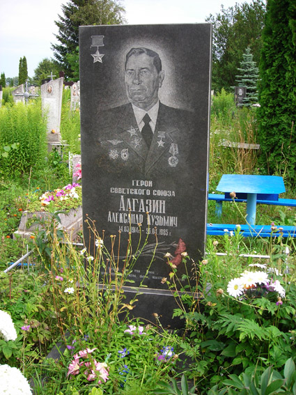 Алгазин Александр Кузьмич - штурман звена 9-го гвардейского авиационного полка 7-й гвардейской авиационной дивизии 3-го авиационного корпуса авиации дальнего действия (АДД), гвардии капитан.
