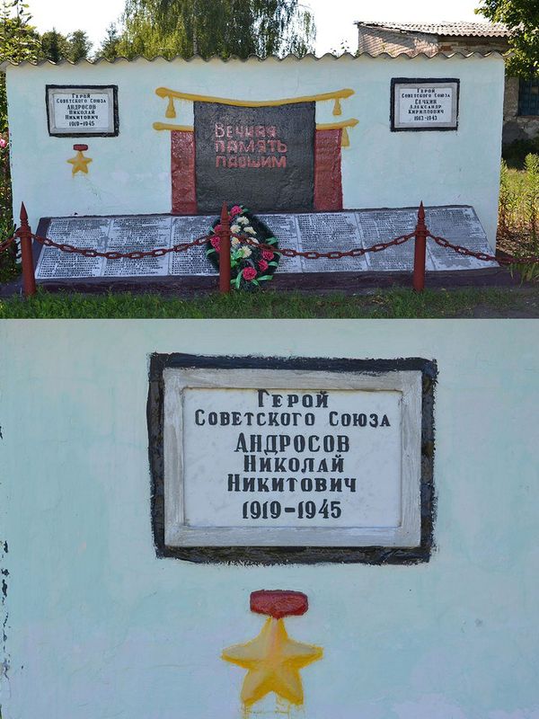 В селе Ждимир Знаменского района Орловской области установлен бюст Героя, в городе Орёл на здании средней школы №3, в которой учился Н.Н.Андросов, – мемориальная доска.