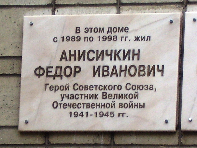 В Новосибирске на доме, в котором жил Герой, установлена мемориальная доска. Имя Героя носила пионерская дружина школы в его родной деревне. На территории гвардейского Звенигородского Краснознамённого ракетного полка оборудован уголок Ф.И.Анисичкина.