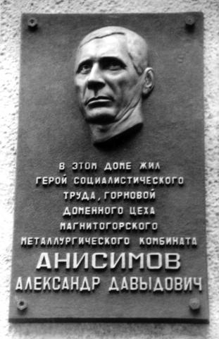 В 2005 году в Магнитогорске на доме по улице Сталеваров, где жил А.Д. Анисимов, установлена мемориальная доска.