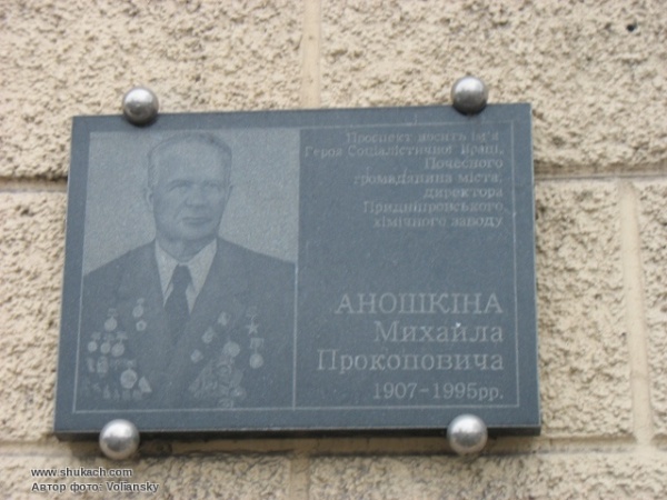 Аношкин Михаил Прокофьевич – директор Приднепровского химического завода Министерства среднего машиностроения СССР, город Днепродзержинск Днепропетровской области Украинской ССР.