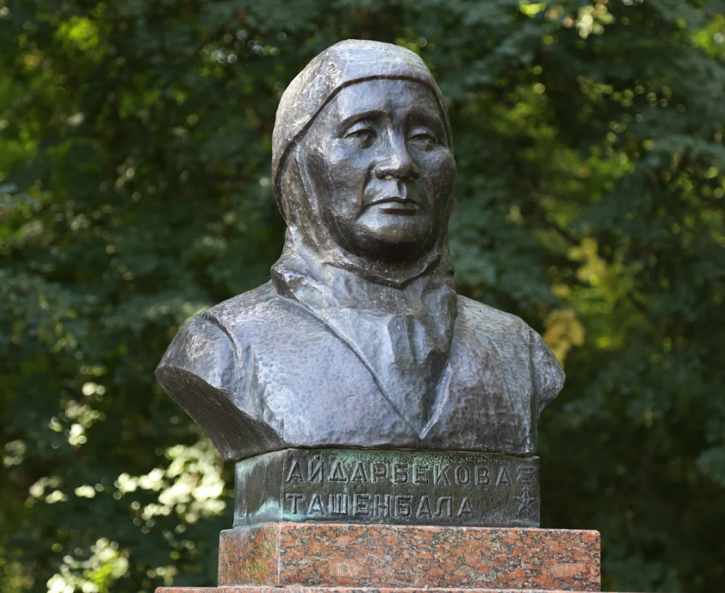 Айдарбекова Ташинбала – звеньевая колхоза «Джана-Талап» Талды-Курганского района Талды-Курганской области Казахской ССР.