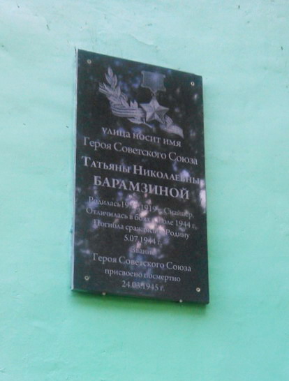 Барамзина Татьяна Николаевна – телефонист 3-го батальона 252-го стрелкового полка (70-я стрелковая дивизия, 33-я армия, 2-й Белорусский фронт), ефрейтор.