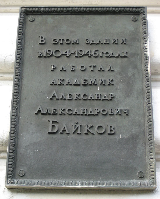 Байков Александр Александрович – начальник отдела металловедения Института металлургии Академии наук СССР, академик и вице-президент Академии наук СССР, город Москва.