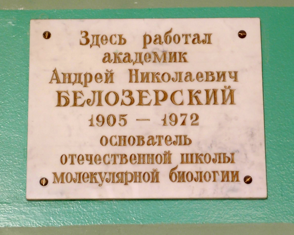 Белозерский Андрей Николаевич - учёный в области биохимии растений, старший научный сотрудник Института биохимии А.Н. Баха Академии наук СССР, профессор кафедры Московского государственного университета имени М.В. Ломоносова, академик Академии наук СССР.