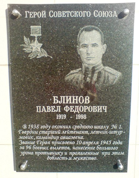 Блинов Павел Фёдорович - командир звена 141-го гвардейского штурмового авиационного полка (9-я гвардейская штурмовая авиационная дивизия, 1-й гвардейский штурмовой авиационный корпус, 2-я воздушная армия, 1-й Украинский фронт), гвардии старший лейтенант.