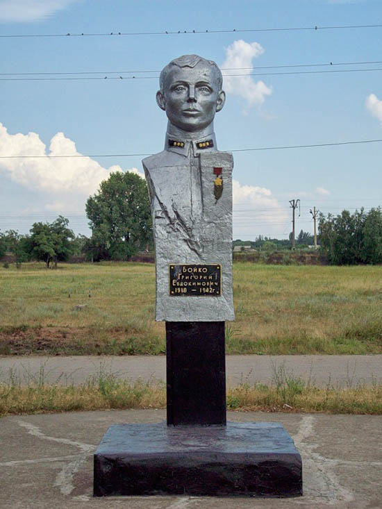 Командир звена 514-го отдельного пикирующего бомбардировочного авиационного полка (Северо-Западный фронт) старший лейтенант Григорий Бойко совершил 158 боевых вылетов на разведку и бомбардировку живой силы и техники противника.