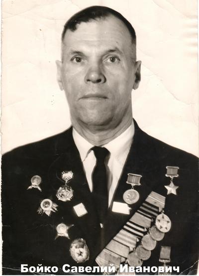 Бойко Савелий Иванович - командир отделения связи миномётной батареи 17-го гвардейского стрелкового ордена Суворова 3-й степени полка (5-я гвардейская стрелковая Городокская Краснознамённая ордена Суворова 2-й степени дивизия, 8-й гвардейский стрелковый Неманский корпус, 11-я гвардейская армия, 3-й Белорусский фронт), гвардии старшина.