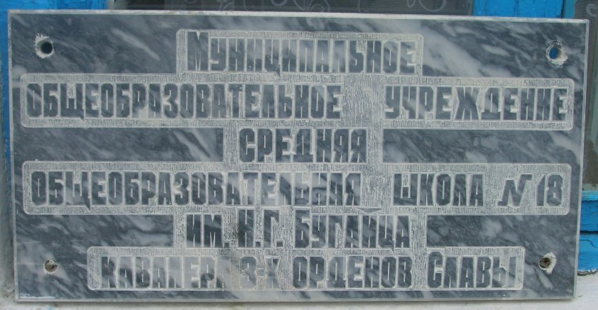 Средней образовательной школе №18 в городе Темрюк присвоено имя Н.Г.Бугайца.