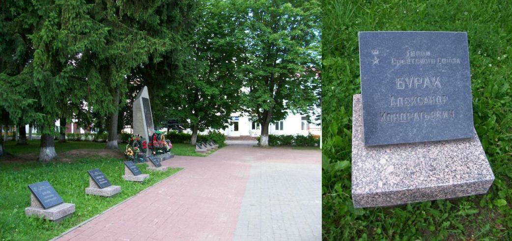 В городе Дзержинск Минской области на Аллее Героев установлен памятный знак А.К.Бураку.