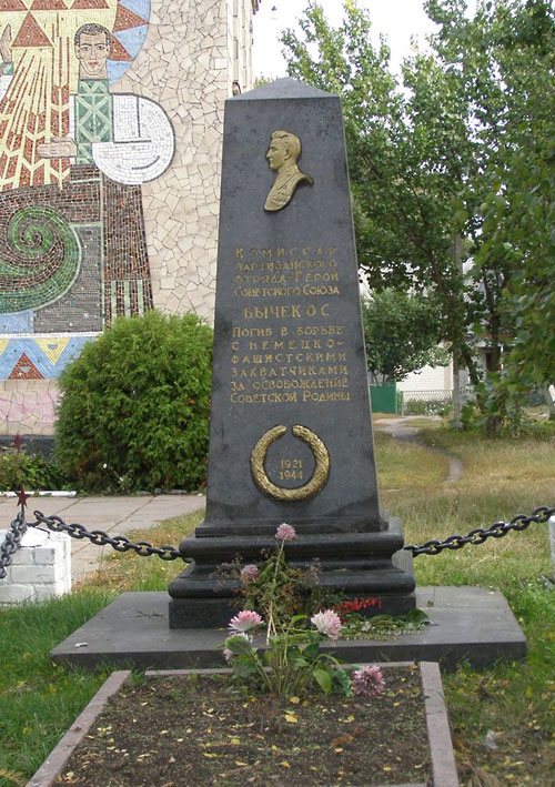 7 мая 1944 года при выполнении боевого задания старший лейтенант госбезопасности Олег Сергеевич Бычок погиб. Был похоронен в деревне Липово Мядельского района Минской области. После окончания Великой Отечественной войны прах Героя перевезли в родной город и похоронили на центральной площади.