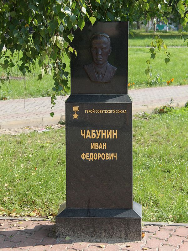 Памятный знак И.Ф. Чабунину установлен в городе Спас-Клепики Рязанской области на Аллее Героев.