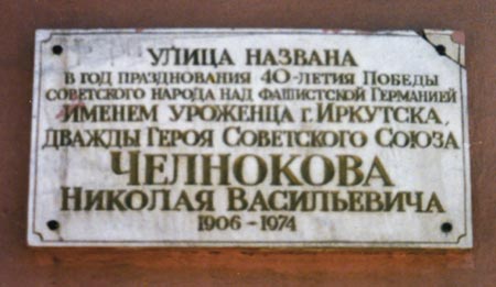 Бронзовый бюст дважды Героя Советского Союза Н.В. Челнокова установлен в городе-герое Ленинграде - Санкт-Петербурге на Аллее Героев Московского парка Победы.