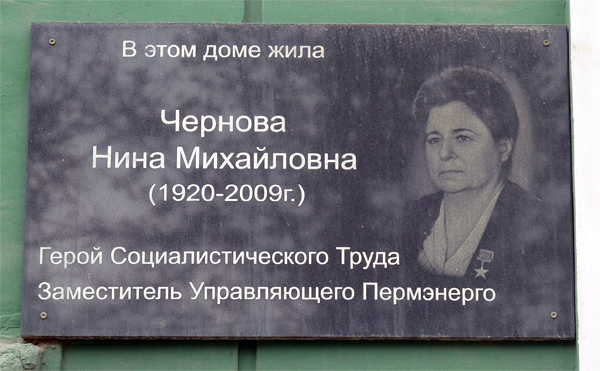 5 мая 2011 года в Перми на доме по адресу Комсомольский проспект, 51, где жила Н.М. Чернова, ей установлена мемориальная доска.