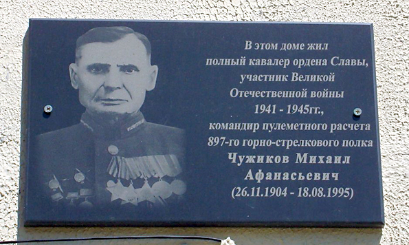 Чужиков Михаил Афанасьевич – командир пулеметного расчета 897-го горно-стрелкового полка (242-я горно-стрелковая дивизия, 1-я гвардейская армия, 4-й Украинский фронт), сержант.
