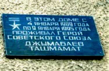 В городе Ош установлен бюст славного земляка, а на фасаде дома № 35а по улице Исанова, в котором последние годы проживал Герой, - мемориальная доска.
