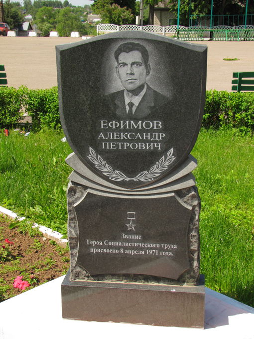 Памятный знак А.П.Ефимову установлен на Аллее Героев в посёлке Монастырщина Смоленской области.