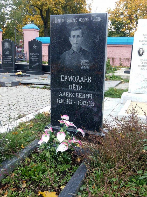 Ермолаев Пётр Алексеевич - пулеметчик 1312-го стрелкового полка (17-я стрелковая дивизия, 48-я армия, 2-й Белорусский фронт) рядовой – на момент представления к награждению орденом Славы 1-й степени.