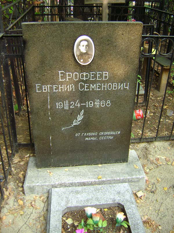 На какое-то время пулемёты замолчали. Гитлеровские автоматчики снова бросились на траншеи наших пехотинцев. Будучи тяжело раненным, Е.С.Ерофеев не покинул поля боя. Истекая кровью, он стрелял, пока не подошла помощь.