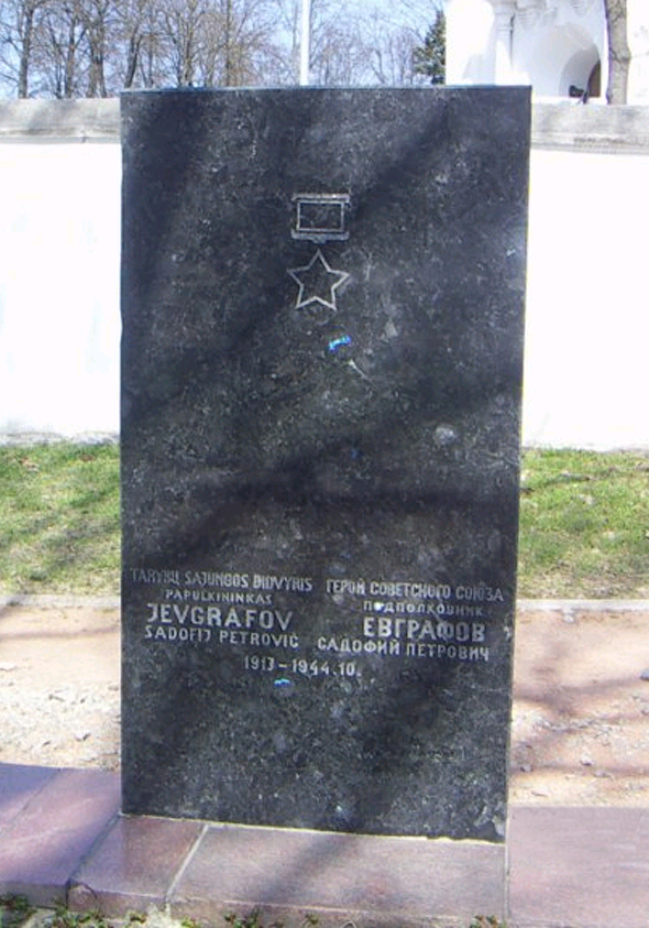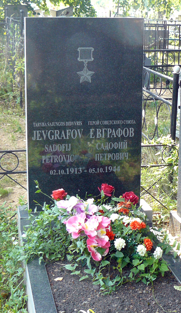 Бои продолжались. 5 октября 1944 года подполковник Евграфов погиб от осколка снаряда на наблюдательном пункте, откуда корректировал огонь своих батарей при форсировании наших частей реки Вента.