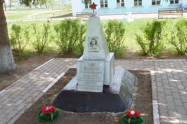 В посёлке станции Кулиновка Борисовского района Белгородской области установлен памятник Н.П.Евсюкову, а на Аллее Героев в посёлке Борисовка - его бюст. В селе Октябрьская Готня его именем названа улица.