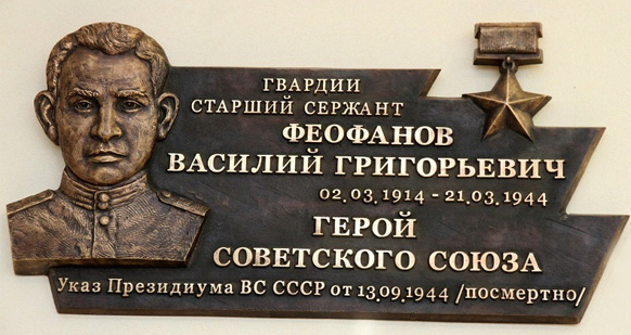 Феофанов Василий Григорьевич – старший разведчик 3-го дивизиона 172-го гвардейского артиллерийского полка (79-я гвардейская Запорожская Краснознаменная стрелковая дивизия, 28-й гвардейский стрелковый корпус, 8-я гвардейская армия, 3-й Украинский фронт), гвардии старший сержант.