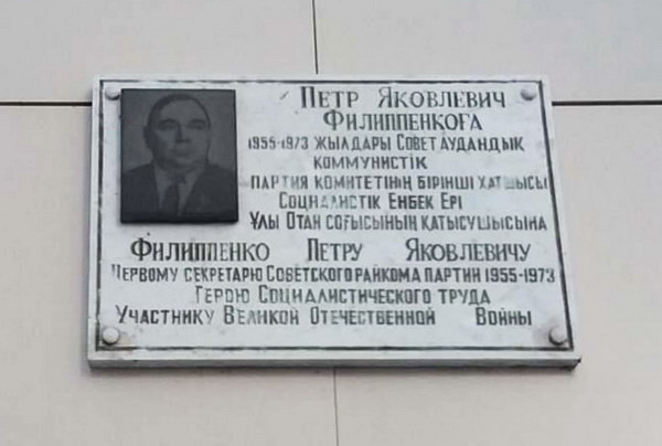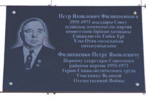 Филиппенко Пётр Яковлевич — первый секретарь Советского райкома Компартии Казахстана, Северо-Казахстанская область Казахской ССР.