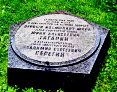 27 марта 1968 года при выполнении тренировочного полёта в сложных метеоусловиях самолёт учебно-тренировочный истребитель (УТИ) "МиГ-15" вошёл в штопор, а для вывода не хватило высоты. Самолёт упал в лес вблизи деревни Новосёлово Киржачского района Владимирской области. Экипаж в составе полковника Ю.А. Гагарина и командира учебного полка Центра подготовки космонавтов Героя Советского Союза полковника-инженера В.С. Серёгина погиб... Урны с прахом Гагарина Ю.А. и Серёгина В.С. захоронены в Кремлёвской стене на Красной площади в городе-герое Москве.