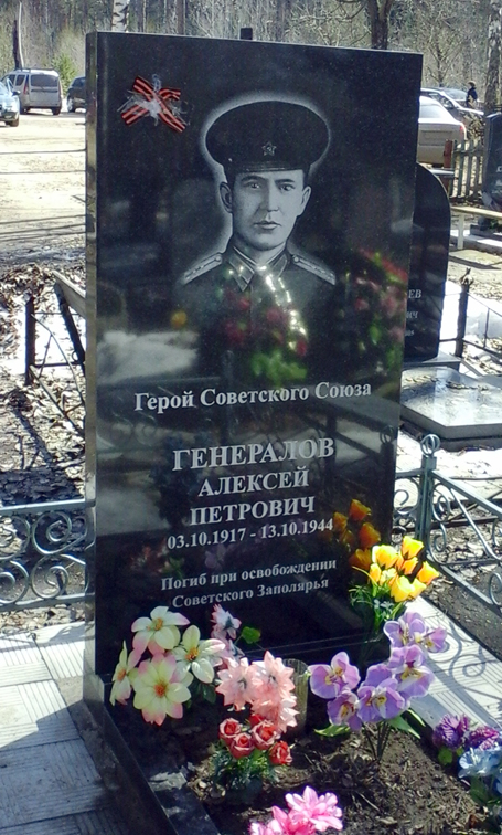 Считалось, что гвардии капитан Генералов А.П. похоронен в братской могиле на 81-м километре шоссе Мурманск - Печенга, где сооружён мемориал «Долина славы». Но осенью 2009 года поисковым отрядом в районе посёлка Корзуново Мурманской области были обнаружены останки советского воина. По номерам медали «За отвагу» и ордена Красной Звезды, найденным при нём, было установлено имя - Генералов Алексей Петрович. 15 октября 2009 года перезахоронен на Троицко-Никольском кладбище в городе Ковров Владимирской области.