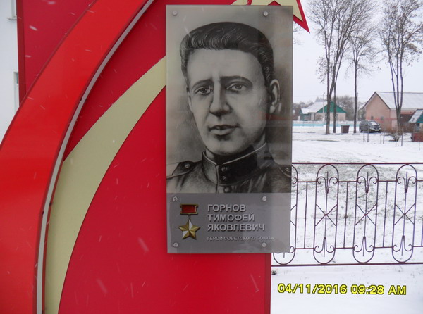 Указом Президиума Верховного Совета СССР от 24 марта 1945 года за образцовое выполнение боевых заданий командования на фронте борьбы с немецкими захватчиками и проявленные при этом отвагу и геройство Горнову Тимофею Яковлевичу присвоено звание Героя Советского Союза. Герою не было суждено получить высокую награду. 23 октября 1944 года он был убит в бою на территории Восточной Пруссии (ныне Калининградская область Российской Федерации).