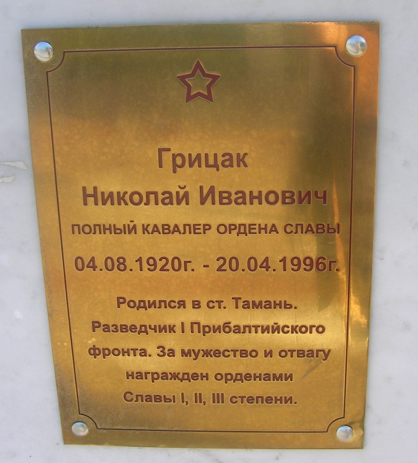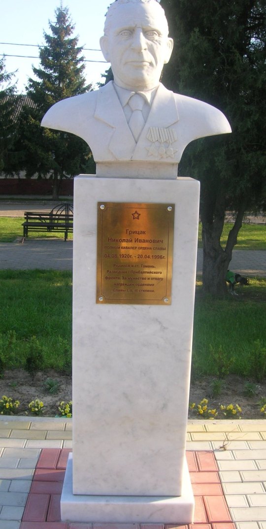 Грицак Николай Иванович - командир отделения взвода пешей разведки 139-го гвардейского стрелкового полка (46-я гвардейская стрелковая дивизия, 6-я гвардейская армия, 2-й Прибалтийский фронт), гвардии старшина - на момент представления к награждению орденом Славы 1-й степени.