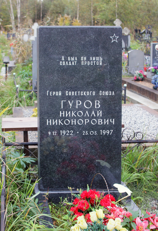 Указом Президиума Верховного Совета СССР от 27 июня 1945 года за мужество и героизм, проявленные в Берлинской операции, гвардии старшему сержанту Гурову Николаю Никоноровичу присвоено звание Героя Советского Союза с вручением ордена Ленина и медали «Золотая Звезда».