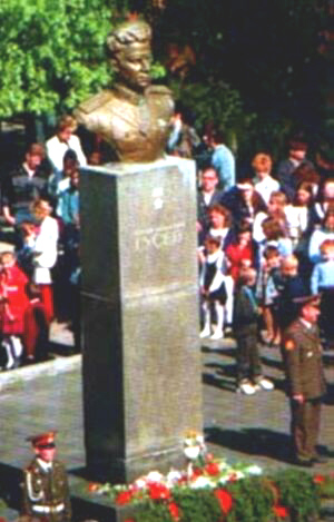 На берегу тихой реки, в самом центре города Гусева сейчас возвышается мраморный обелиск с лаконичной надписью: «Герой Советского Союза Гусев Сергей Иванович». Именем этого человека Родина назвала город Гумбиннен.