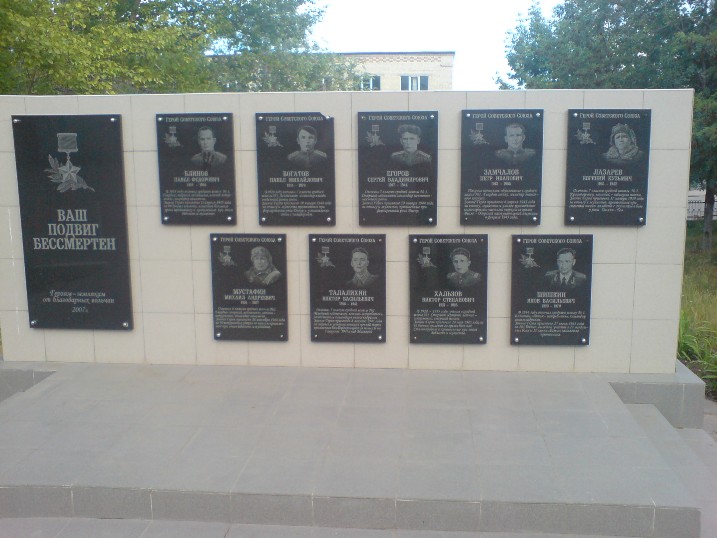 Мемориальная доска установлена на памятной стеле напротив здания средней школы № 1 в городе Вольск Саратовской области, а также на здании самой школы.