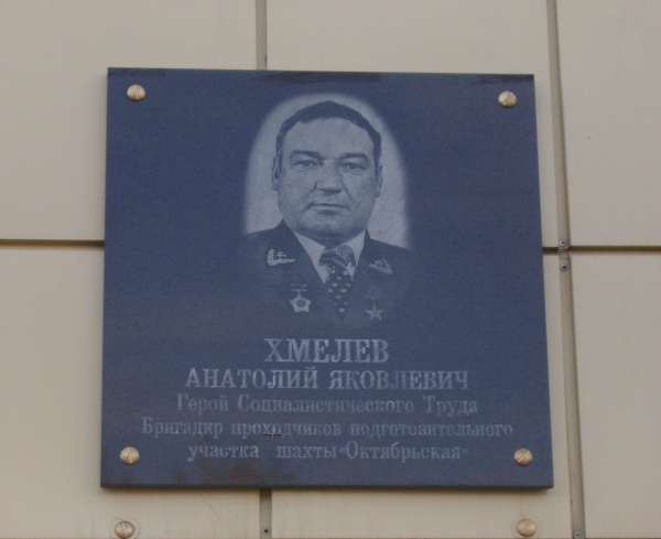 Хмелёв Анатолий Яковлевич – бригадир проходчиков шахты «Октябрьская» производственного объединения «Ленинскуголь» Министерства угольной промышленности СССР, Кемеровская область.