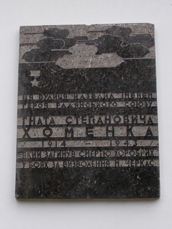 Самые серьёзные и тяжёлые испытания старший сержант геройски преодолел в бою на железнодорожной станции и улицах города Черкассы. Здесь огнём из его самоходки были подожжены две цистерны, выведен из строя паровоз, уничтожены два вражеских орудия. Когда в самоходке закончились снаряды, И.С. Хоменко таранил и уничтожал гусеницами фашистские тягачи с противотанковыми орудиями и автомашины с гитлеровцами на улицах города, своими действиями дезорганизуя противника, сея панику в его гарнизоне.